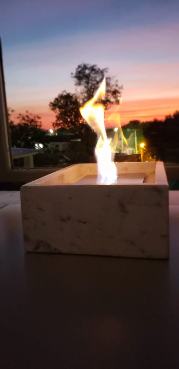 Capacidade = 2 litros de álcool, autonomia  1h30min  e aquece entorno de 35m².